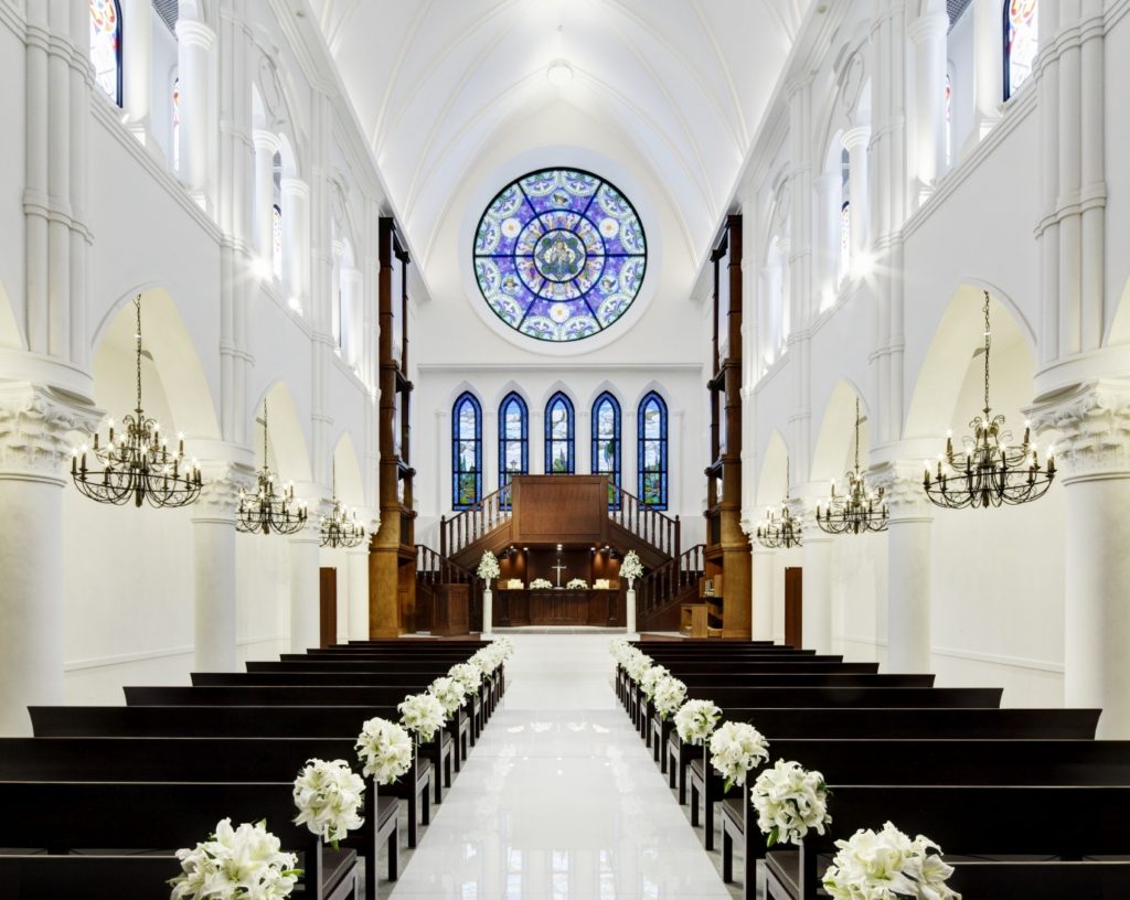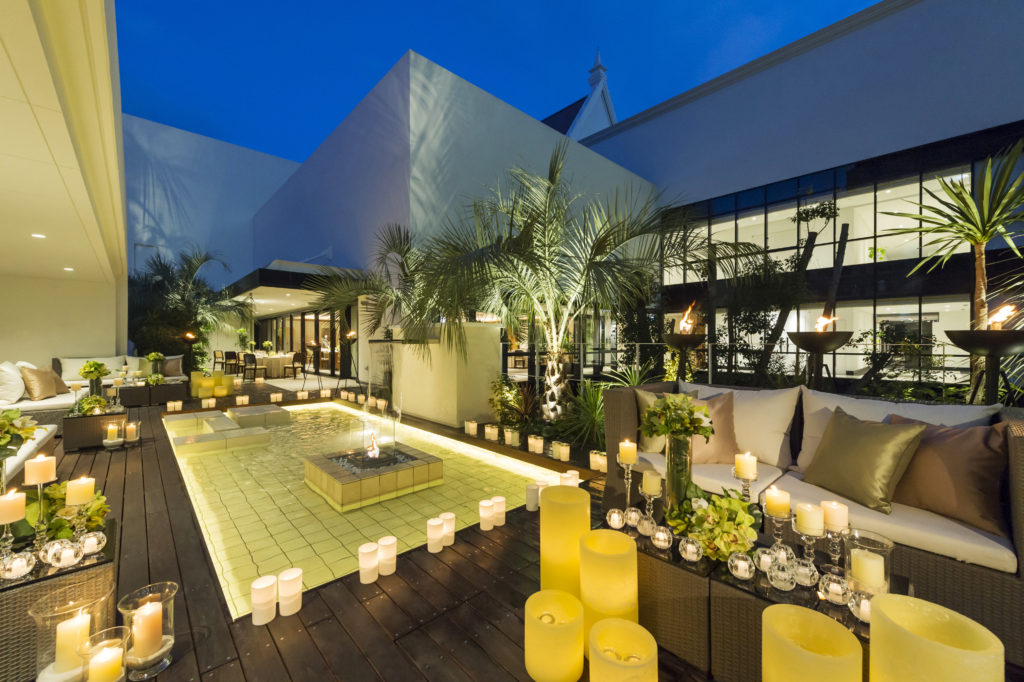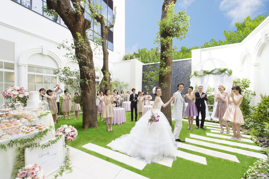幸せの青いステンドグラスが祝福してくれるチャペル、全天候型のチャペルコートがある、安心して挙式日を迎えられる。なだらかなスロープで館内に入り、着物の方でも座れる椅子が多数並ぶ待合室をぬけると、段差がほとんどなく、どんな方にも参列しやすい環境が整っている。バリ、プリンセスなどテーマに合わせた会場、オープンキッチン、スクリーンではなくマルチビジョンテレビが完備されており、都会の真ん中で緑豊かで水の音が聞こえるモダンな環境で特別な時間を過ごしましょう。